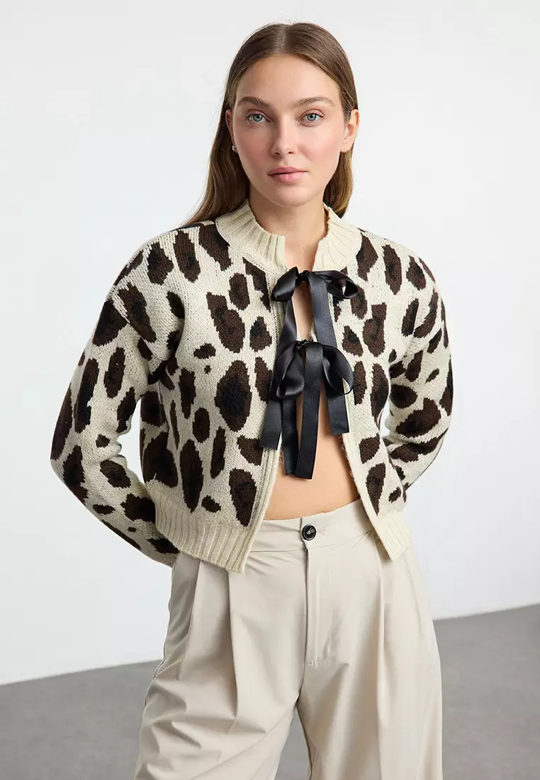 TrendyolStone Leopard Patterned Crop Soft Textured Knitwear Cardigan Twoaw25Hi003552389.00