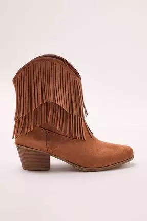 TrendyolTan Suede Brown Tasseled Cowboy Block Heeled Women's Boots Takaw25Bo000314699.00