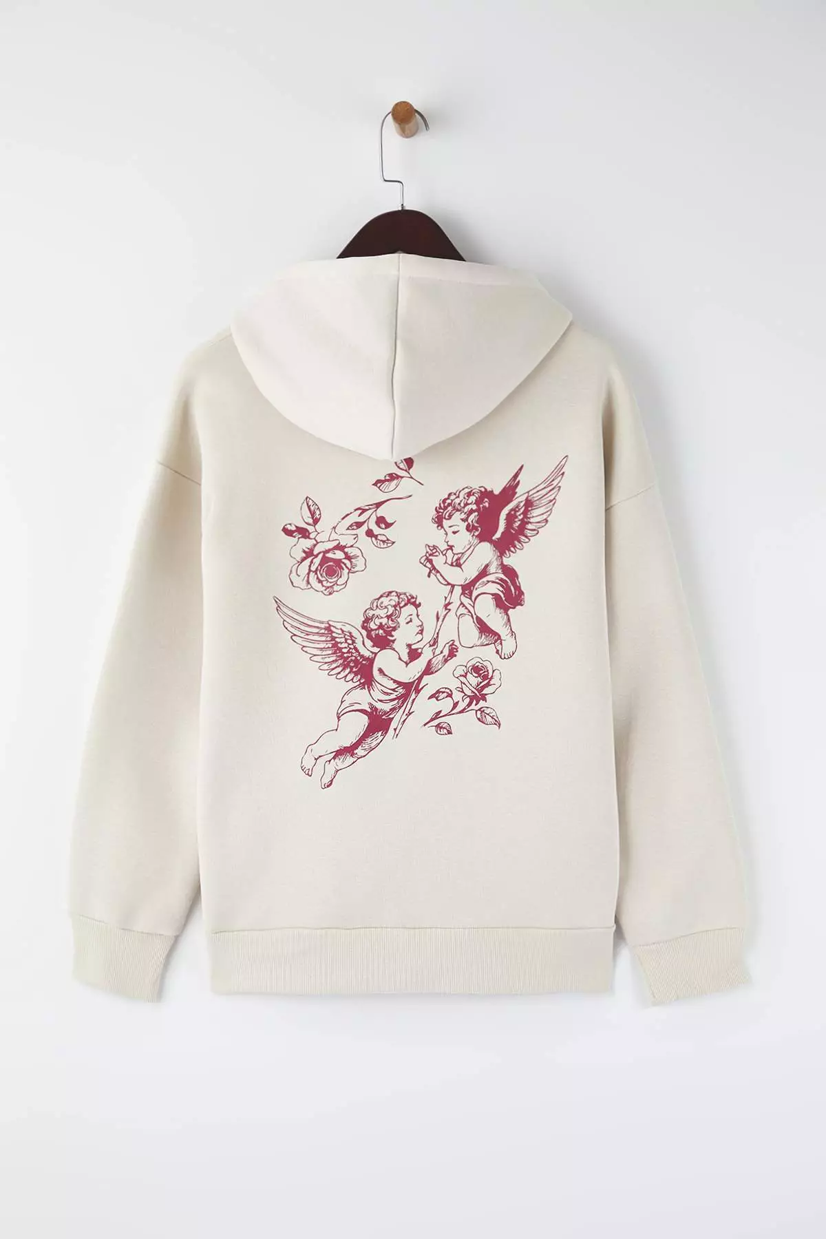 Teen Stone Hooded Back Angel Printed Thick Fleece Oversize Knitted Sweatshirt