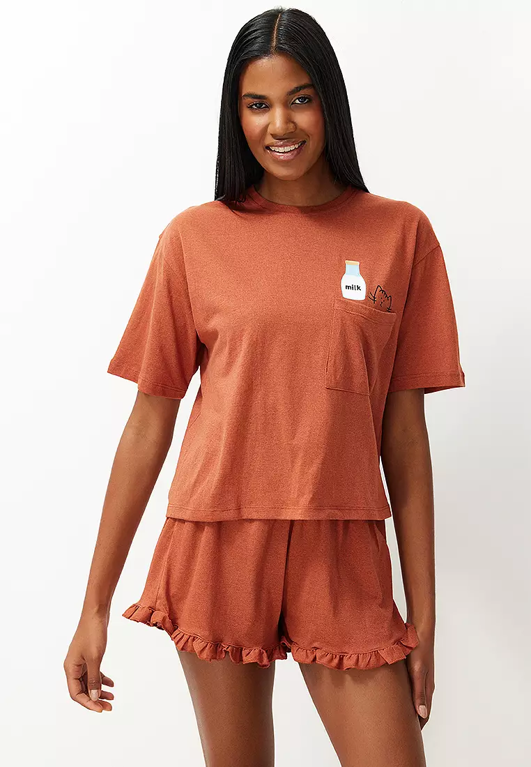 TrendyolTile Frilled Printed Shorts Knitted Pajama Set1299.001139.90