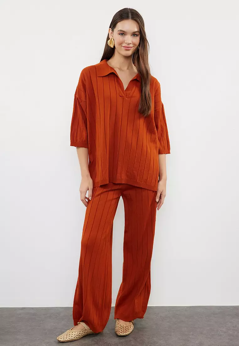 TrendyolTile Wide Pattern Basic Ribbed Knitwear Bottom-Top Set Twoss23Au000292939.002765.90