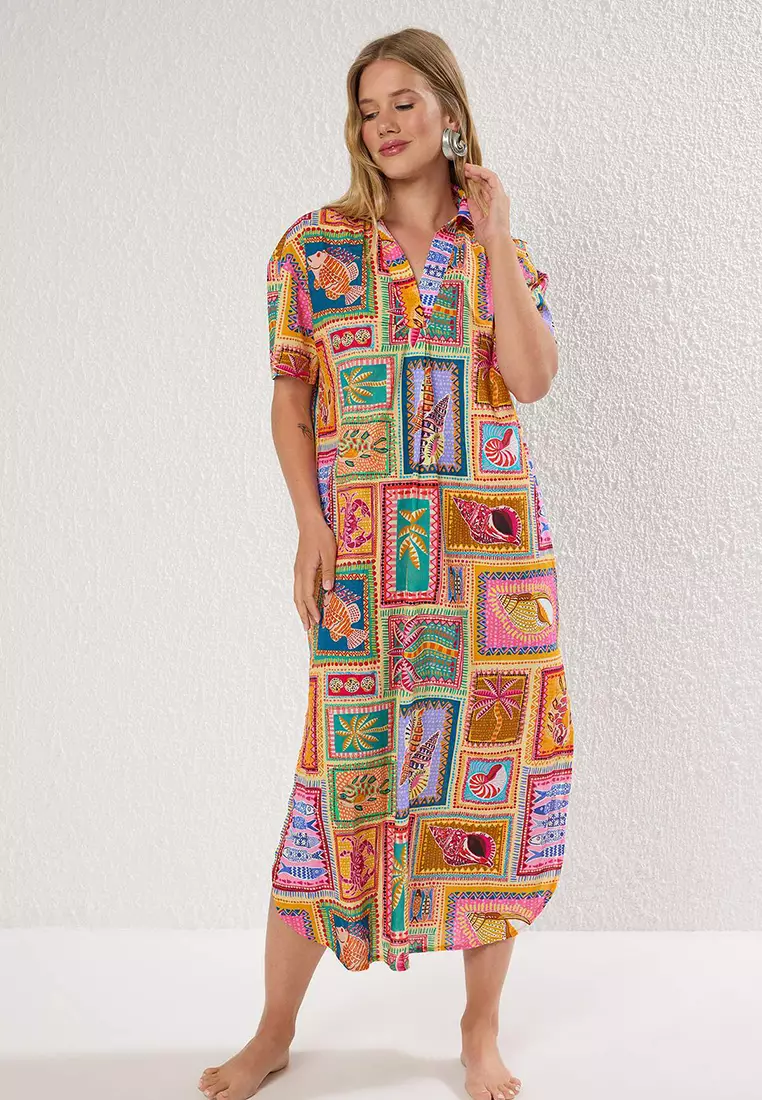 TrendyolTropical Print Midi Beach Dress With Pockets And Slit2549.002334.00