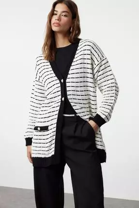 TrendyolTweed Knitwear Cardigan - Jacket Look, Black Tctaw25Th000163599.00