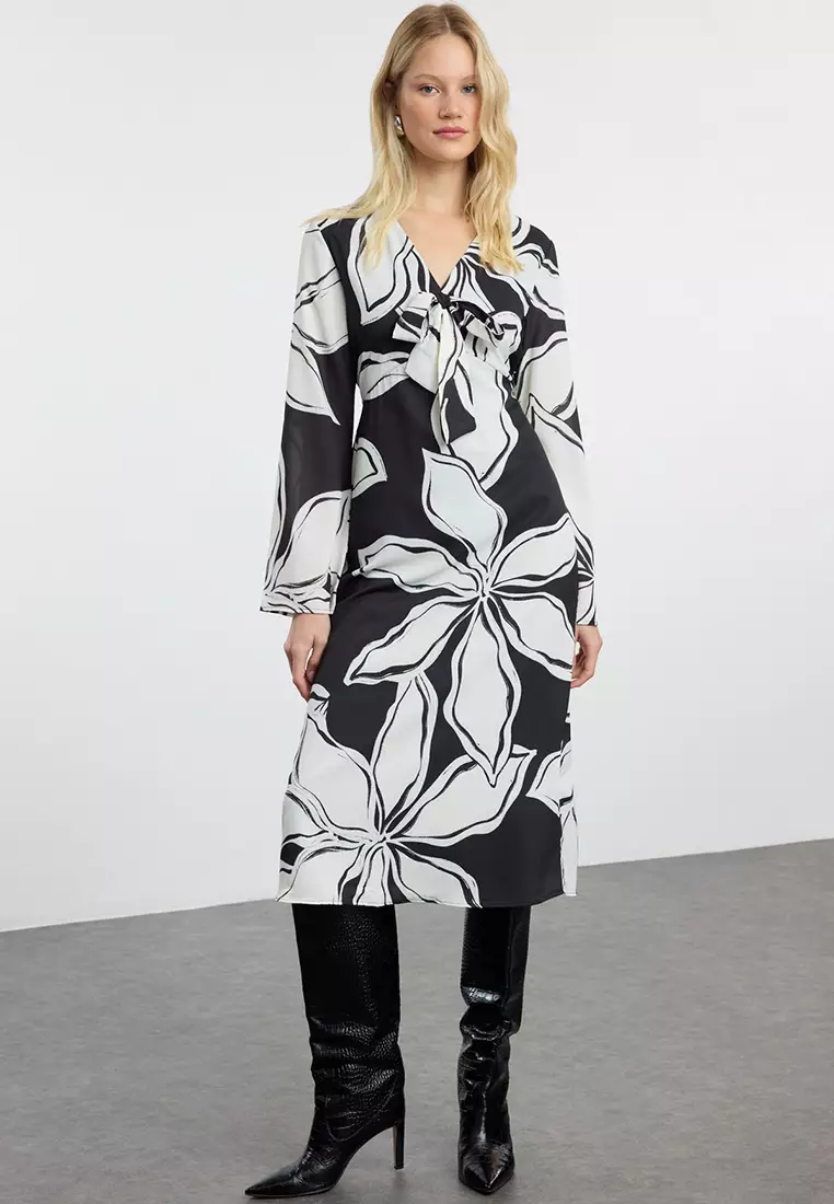 V-Neck Floral Midi Dress
