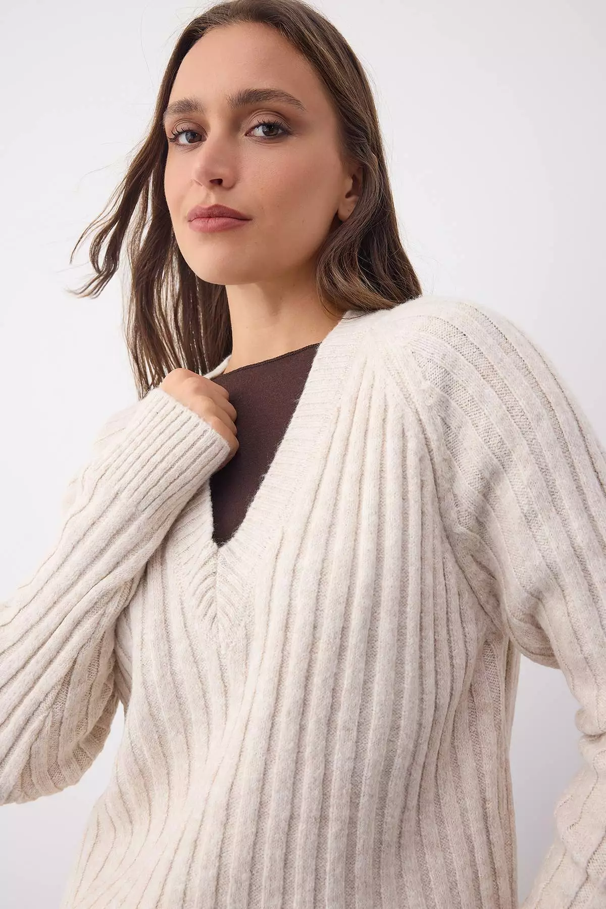 TrendyolWardrobe Essentials Stone Soft Textured Ribbed Knit Sweater2099.001157.00