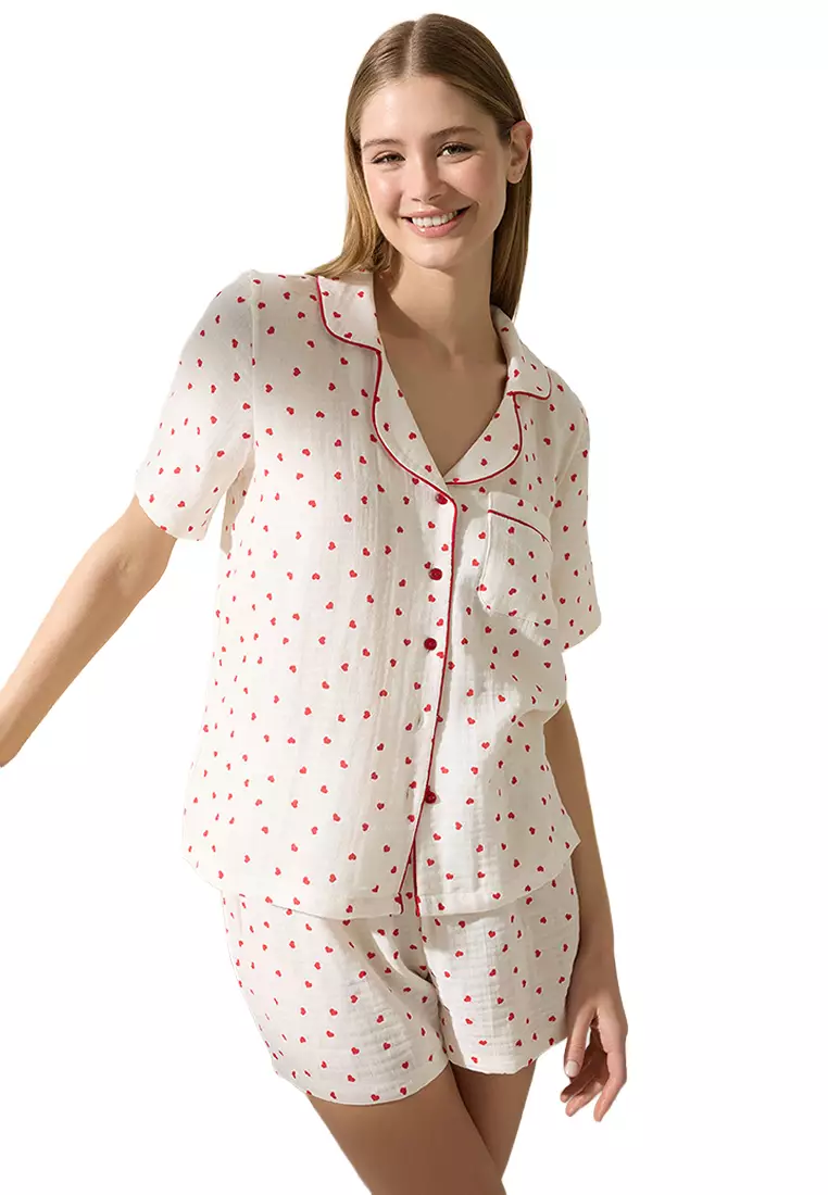 TrendyolWhite 100% Cotton Heart-shaped Muslin Shorts and Woven Pajama Set THMSS25PT004042099.001356.00