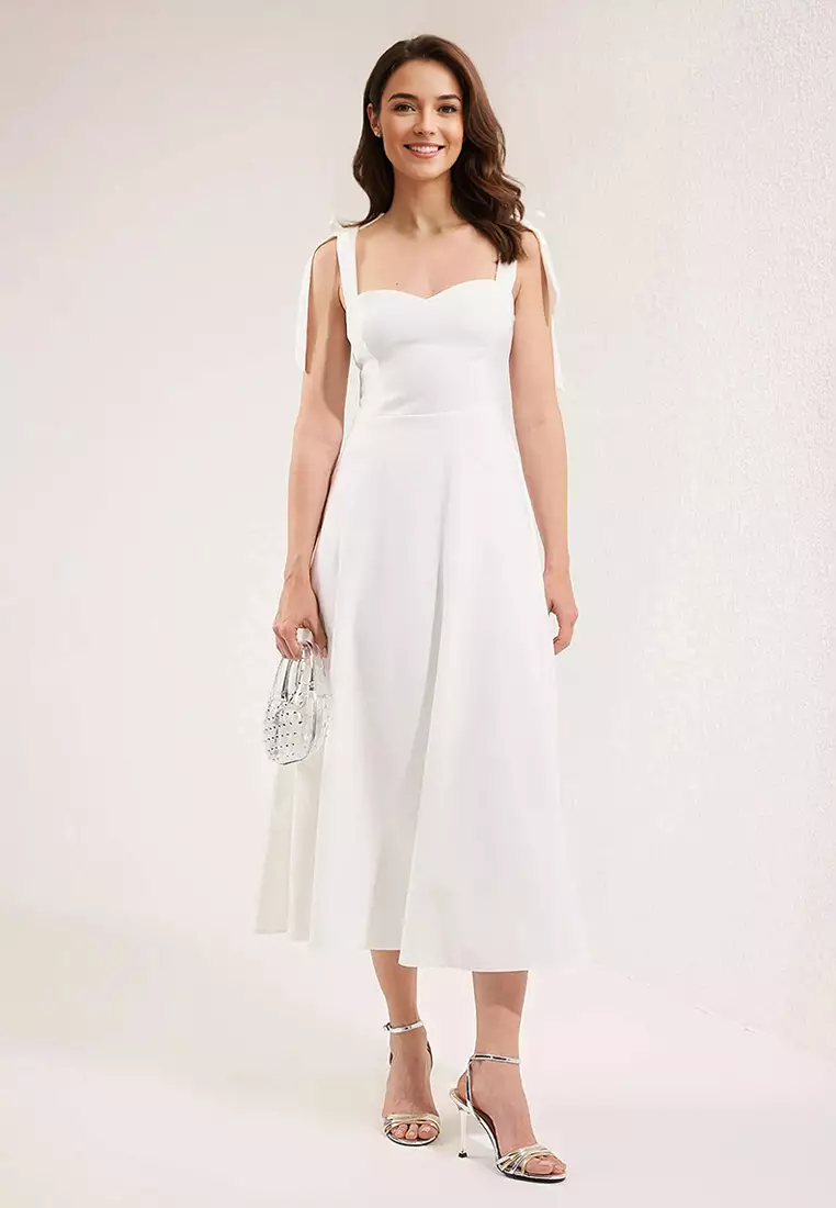 TrendyolWhite A-Line Strap Binding Detail Woven Midi Stylish Evening Dress Night Graduation Dress Tprss24El002512699.002186.00