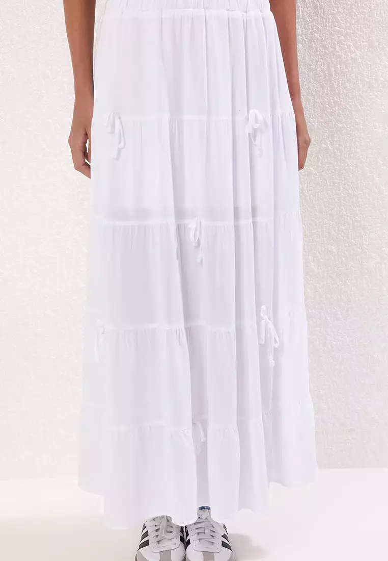 TrendyolWhite Bow Detailed A-line Pattern Flounce Maxi Skirt TWOSS25ET000902329.001548.00