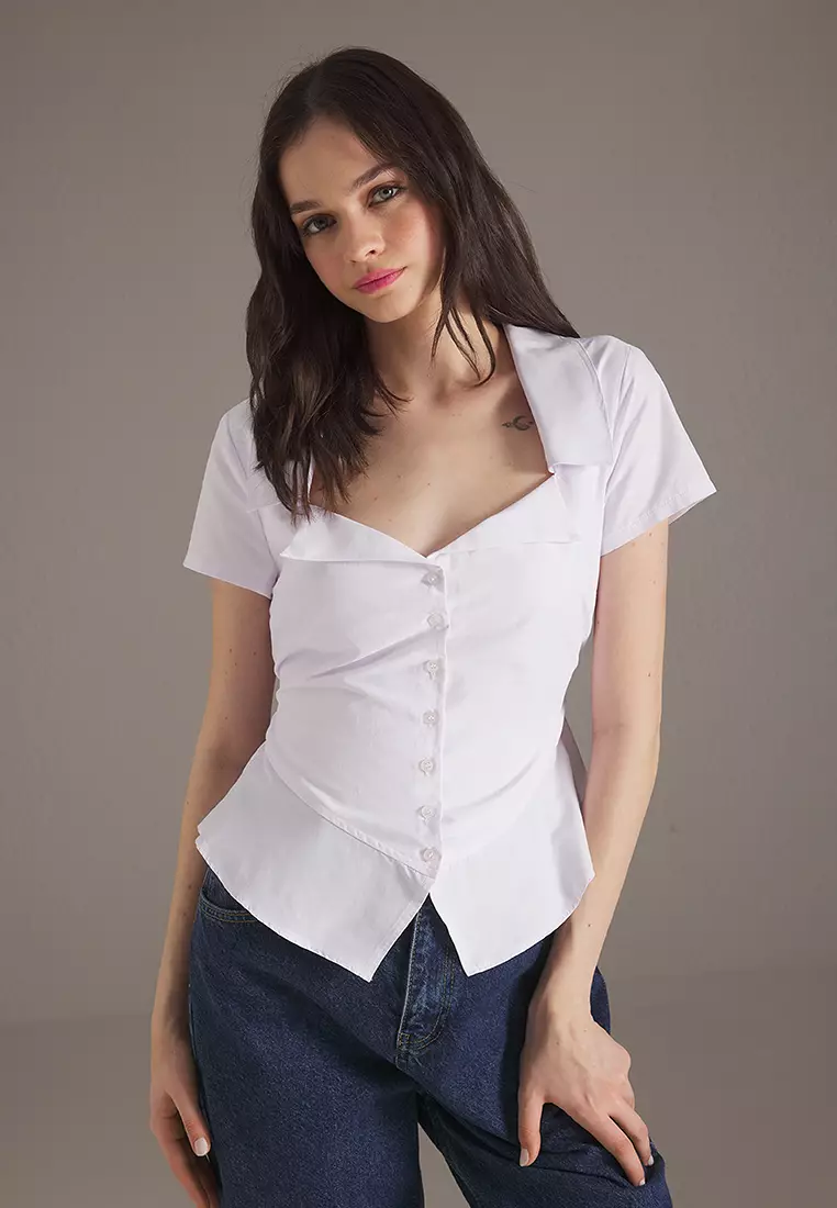 TrendyolWhite Collar Detailed Fitted Shirt TWOSS25GO001391739.001291.90