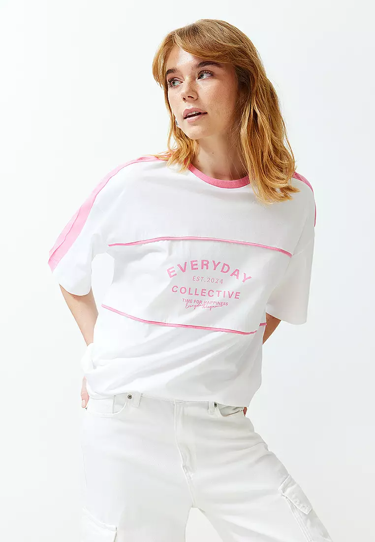 TrendyolWhite Color Block Slogan Oversize/Wide Fit Knitted T-Shirt979.00