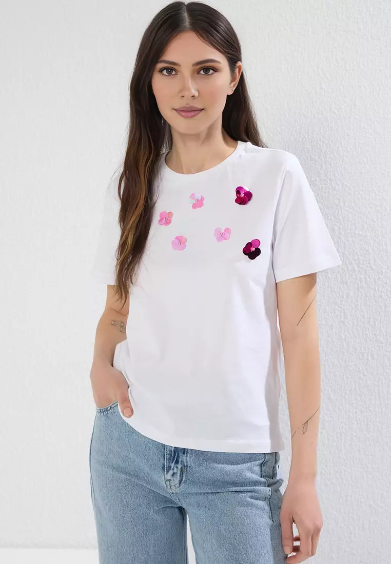 TrendyolWhite Flower Accessory Detail Regular Pattern Knitted T-Shirt1449.00
