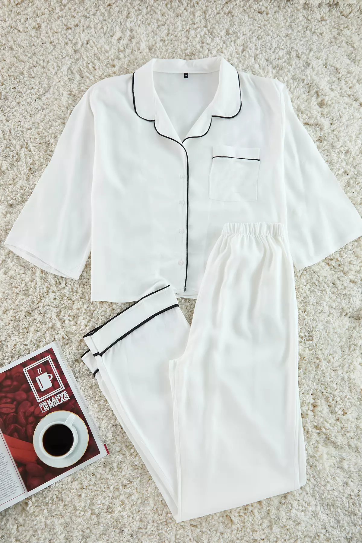 White Piping Viscose Woven Pajama Set