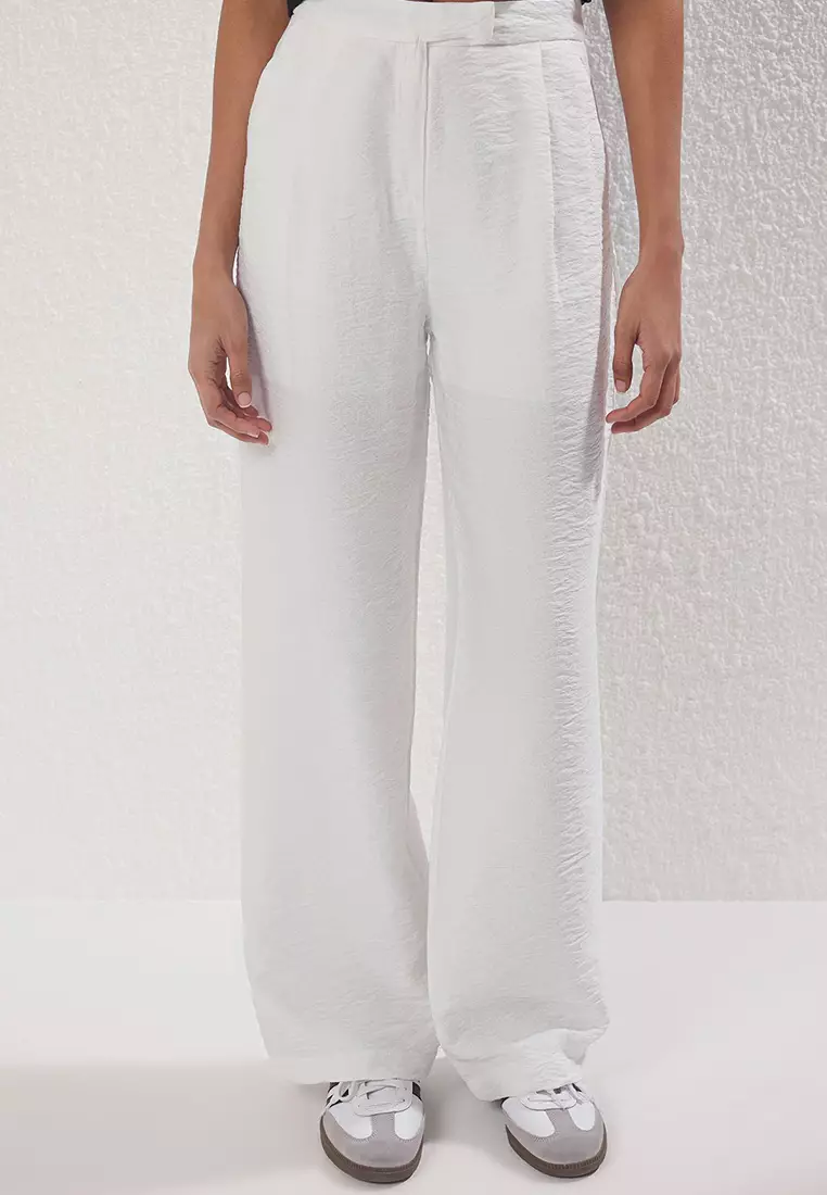 TrendyolWhite Textured Wide Leg/Wide Leg Thin Fabric Lined Trousers TWOSS25PL001131589.001131.00