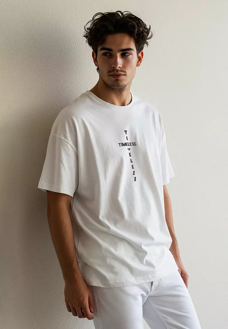 White Unstitched / Wide Cut Letter Printed 100% Cotton T-Shirt Tmnss20Ts1097