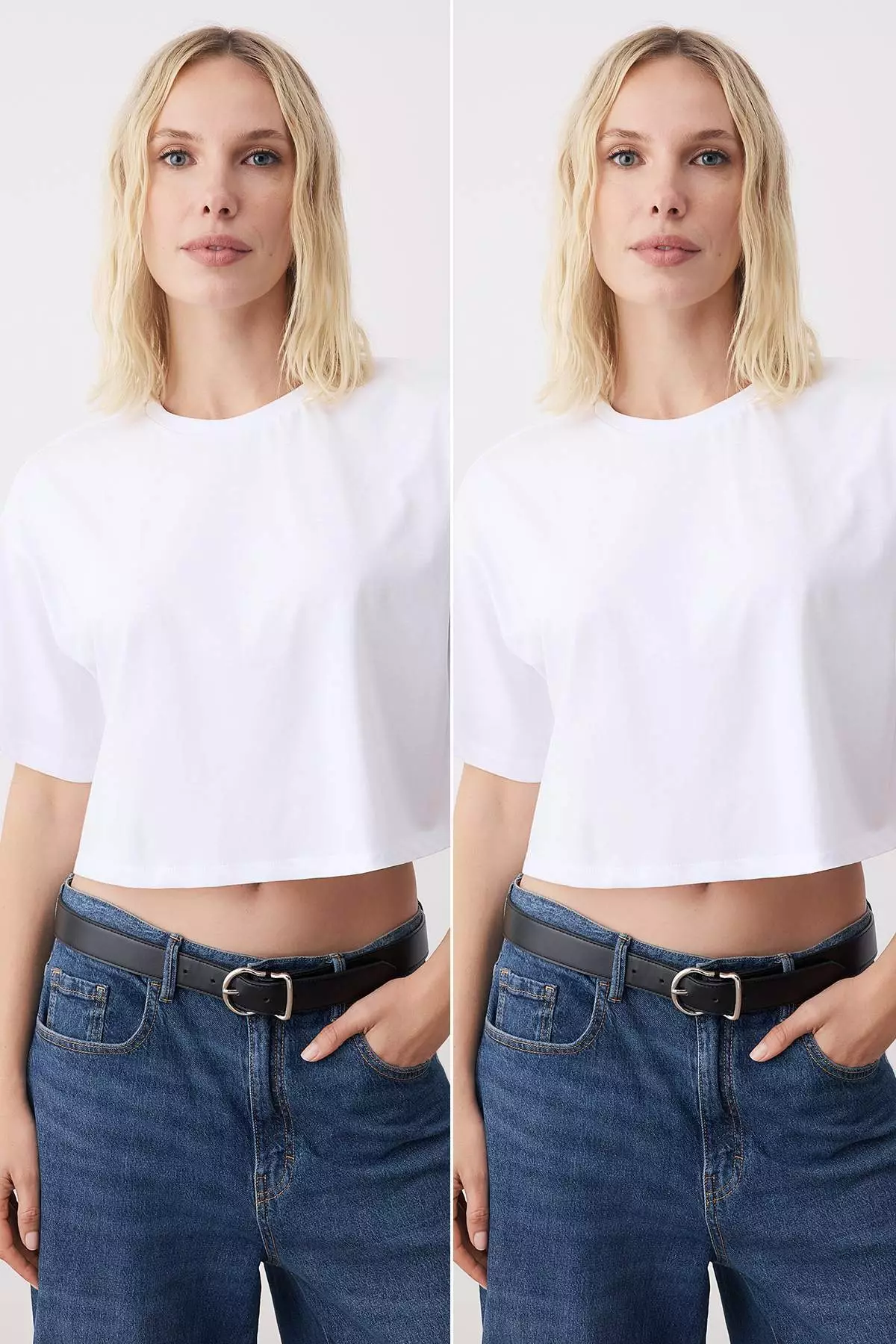 White-White 2-Pack 100% Cotton Relax/Comfortable Cut Crop Knit T-Shirt