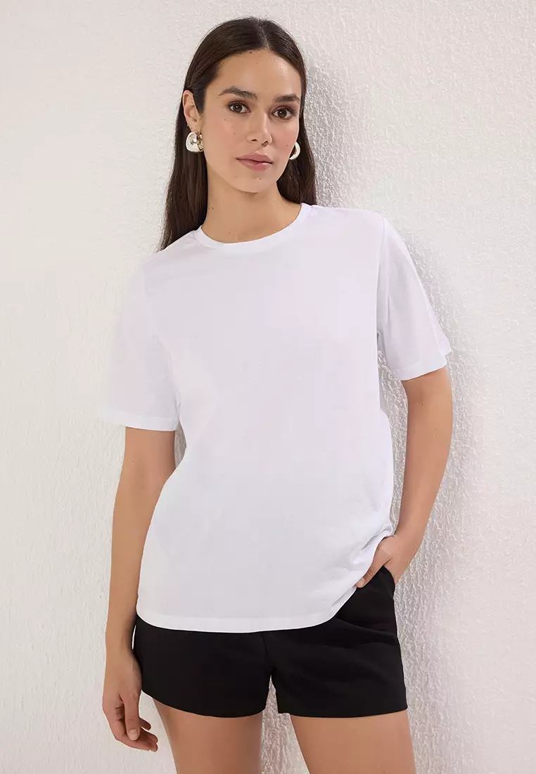 White-White Basic 100% Cotton Crew Neck 2-Pack Knitted T-Shirt Twoss20Ts0141