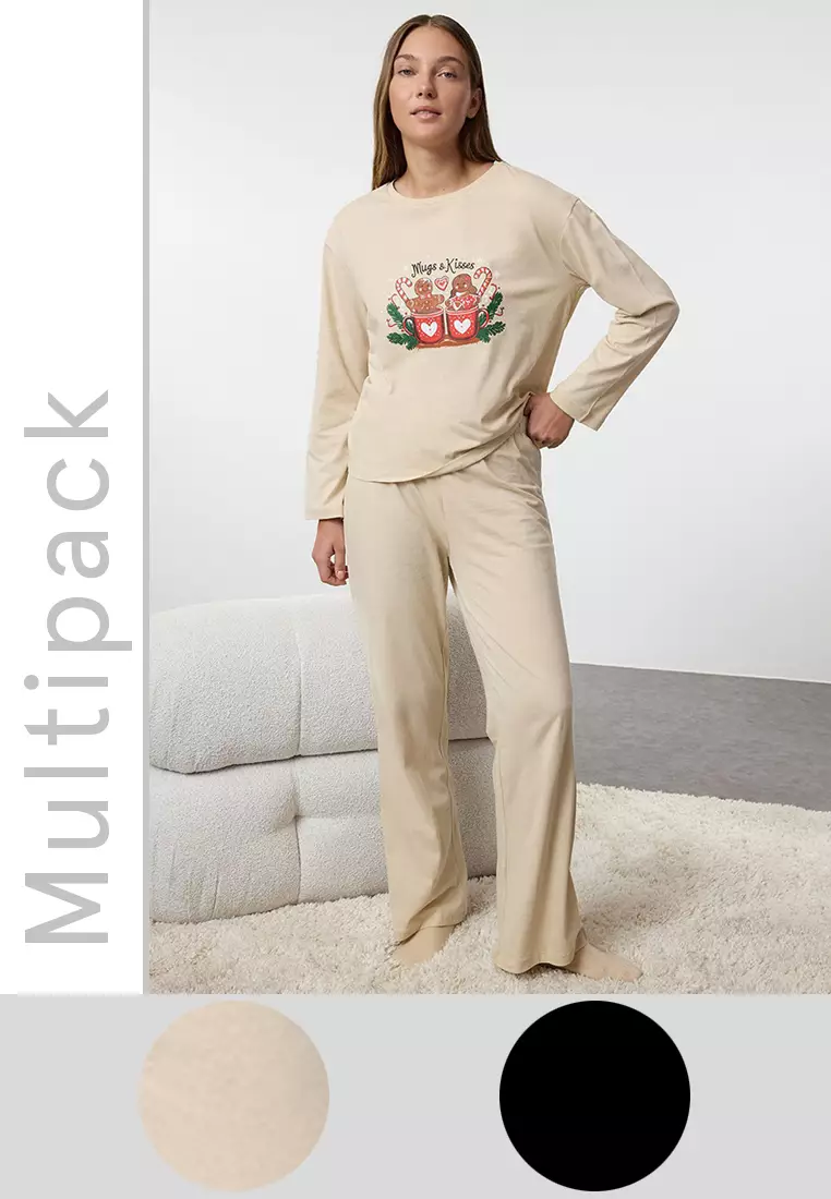 TrendyolWomen Couple/Double Beige 100% Cotton Winter Themed Knitted Pajama Set Thmaw25Pt001621629.001296.90