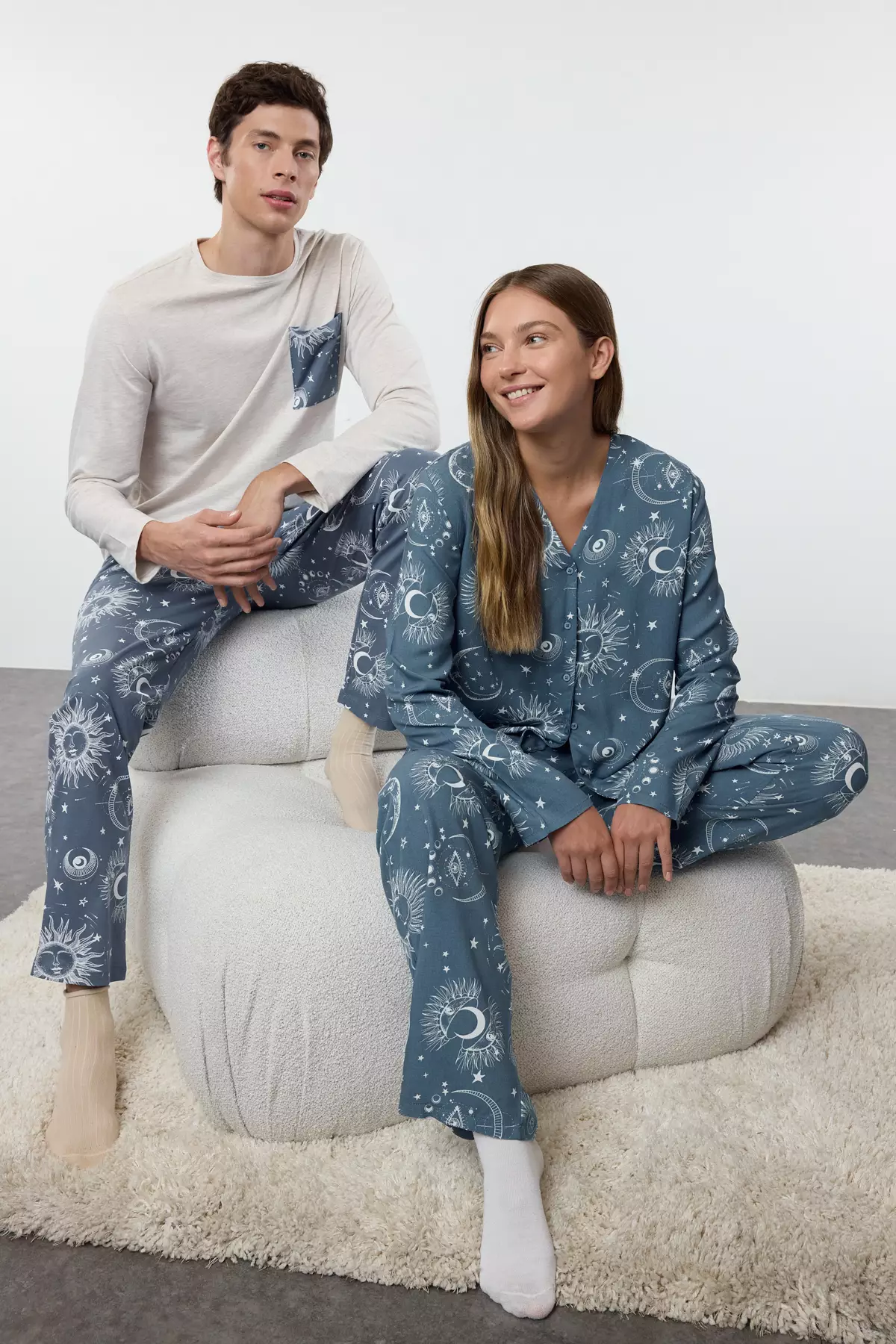 TrendyolWomen's Couple Blue Galaxy Patterned Viscose Woven Pajama Set2299.001296.00