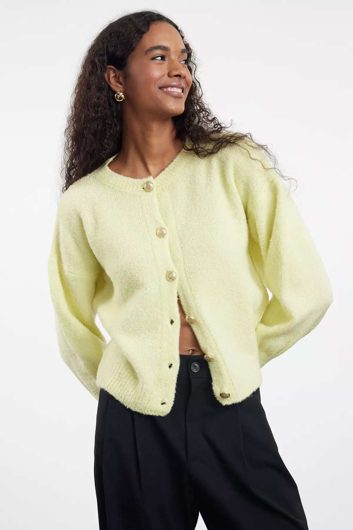 Yellow Boucle Jacket-Looking Knitwear Cardigan TWOAW25HI00147