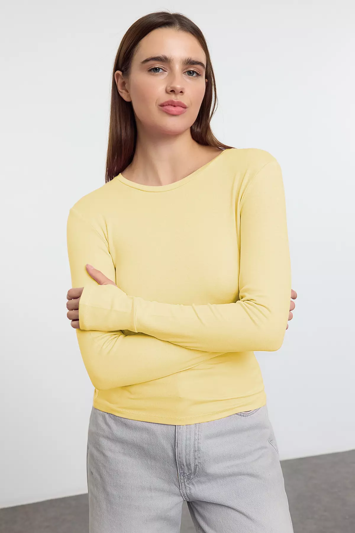 TrendyolYellow Viscose/Soft Fabric Finger-Touch Detailed Flexible Knitted Blouse Twoaw25Bz000141089.00886.00