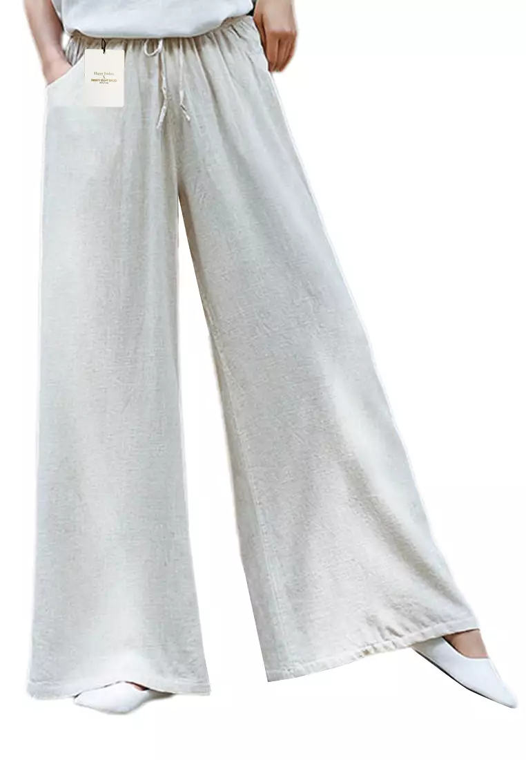 Drawstring Waist Linen Wide-leg Pants BXF2363
