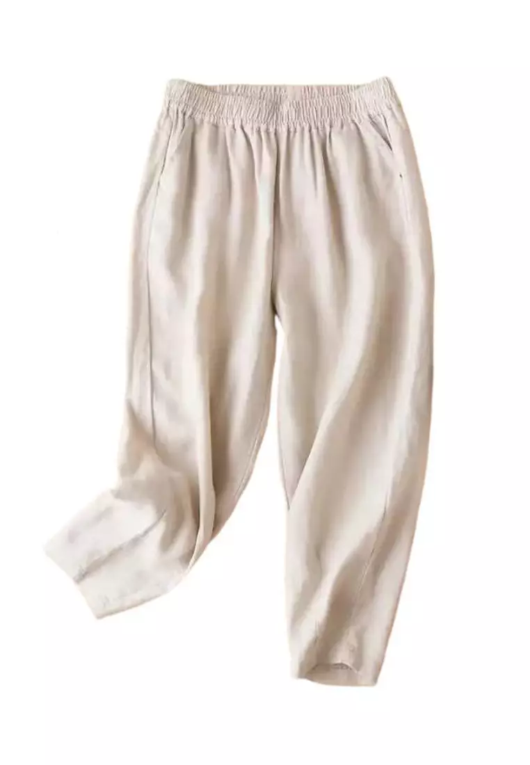 High Waist Cotton-flax Cropped Pants RZ-C132