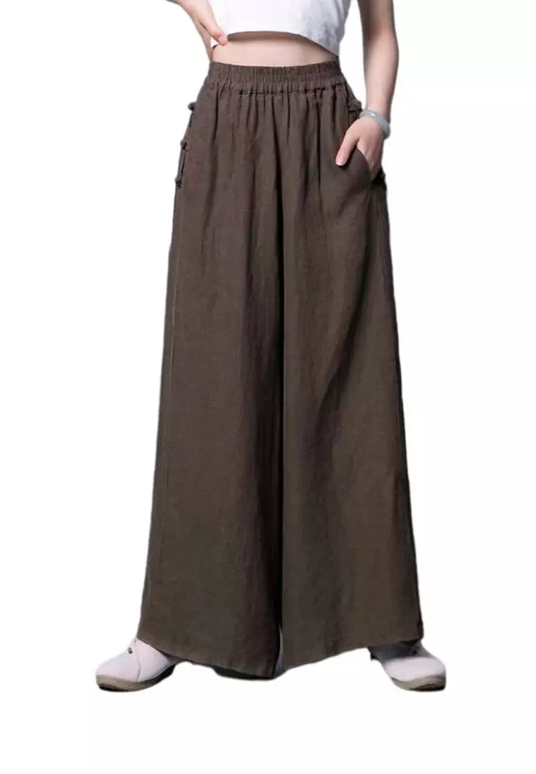 High Waist Cotton-flax Wide-legged Pants RZ9061
