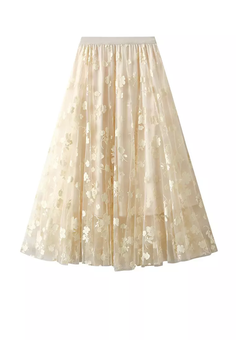 Patchwork Flocked Tulle A-line Skirt AF5215