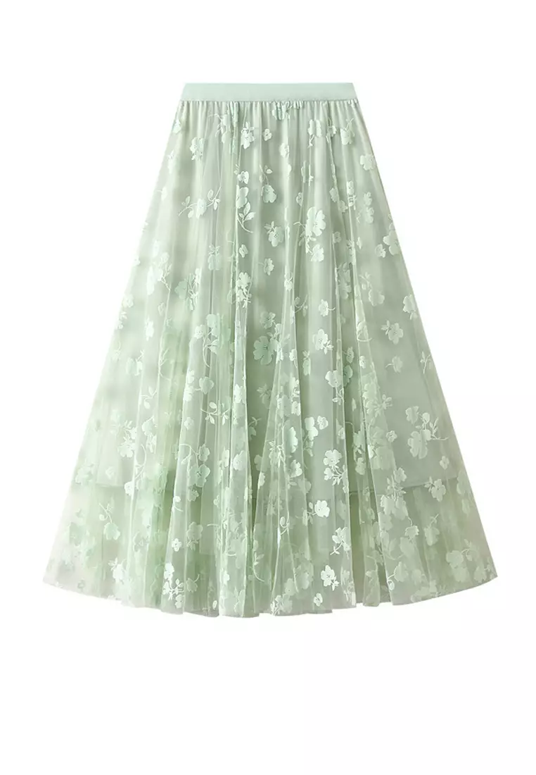 Patchwork Flocked Tulle A-line Skirt AF5215