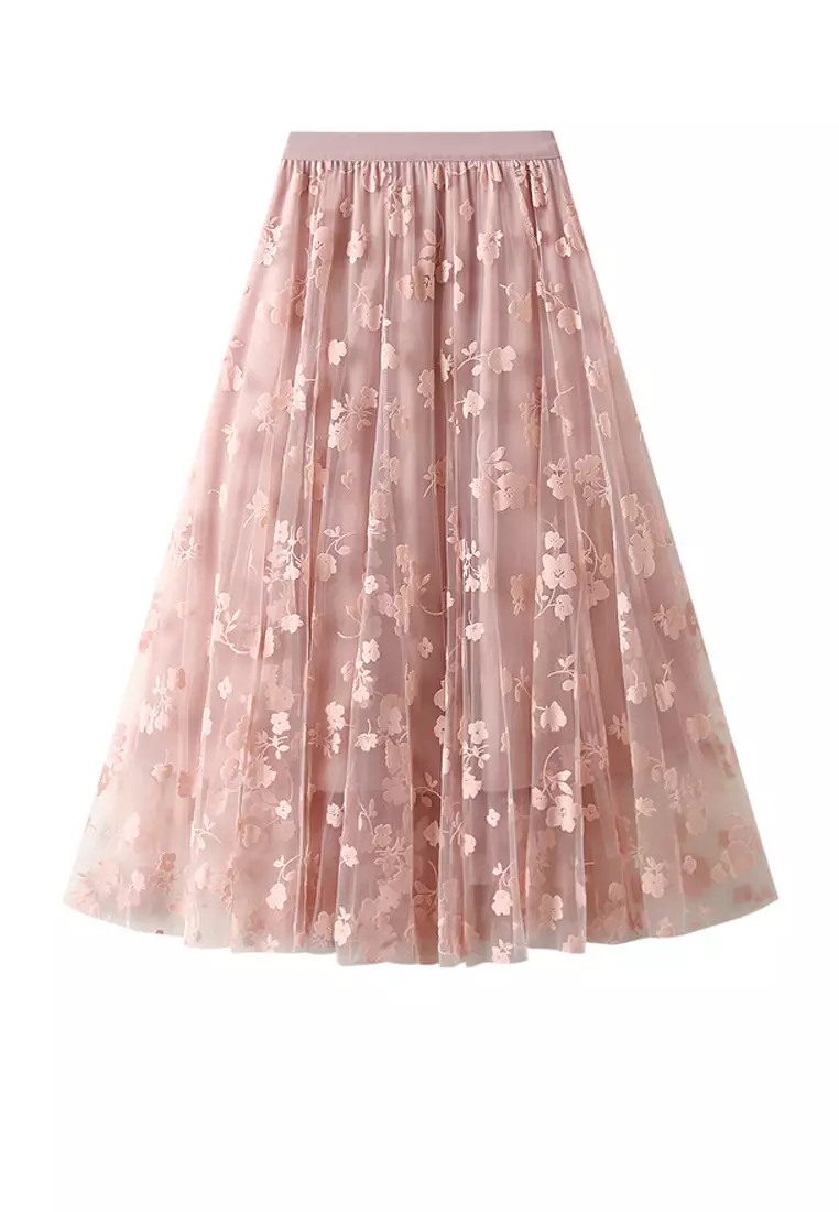 Patchwork Flocked Tulle A-line Skirt AF5215