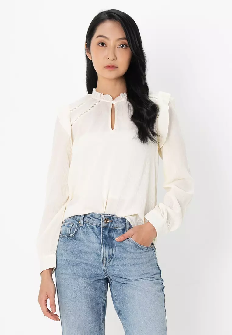 Femi Long Sleeves V-Neck Frill Top