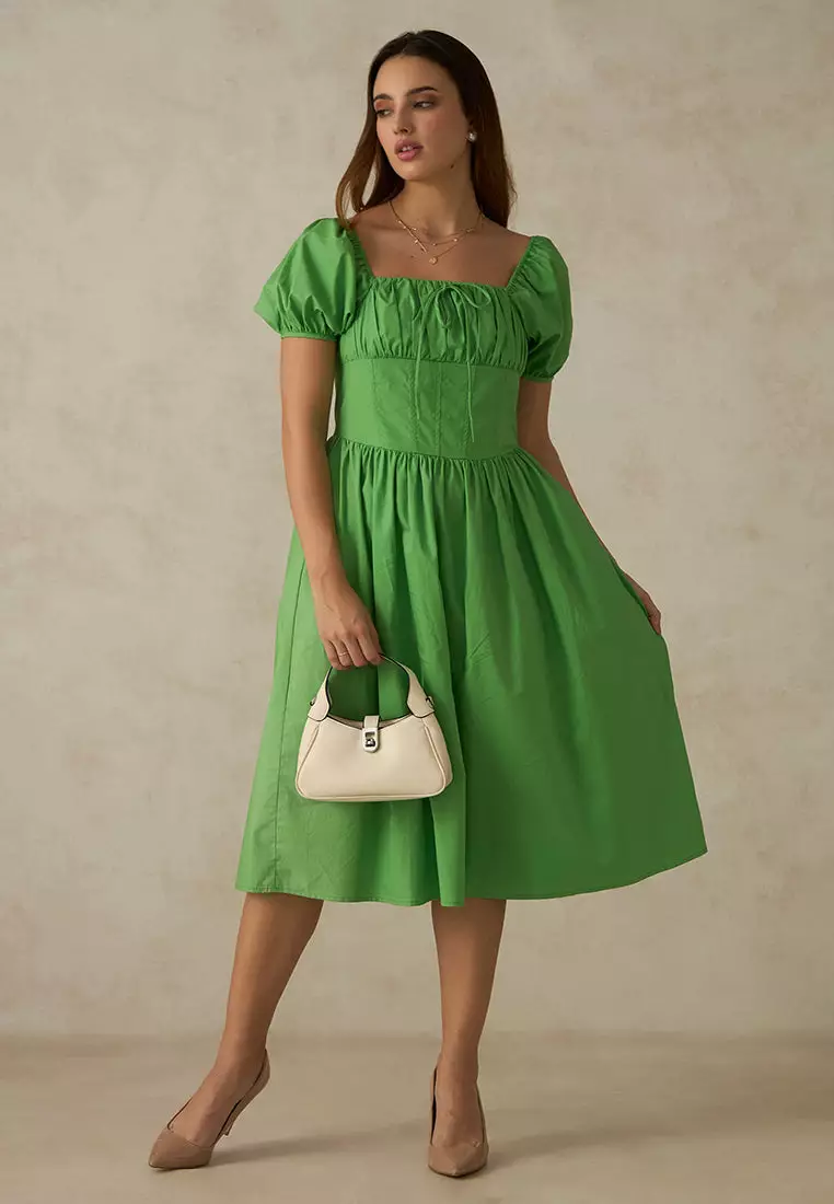 VIRGIO 100% Cotton Midi Length Milkmaid Dress