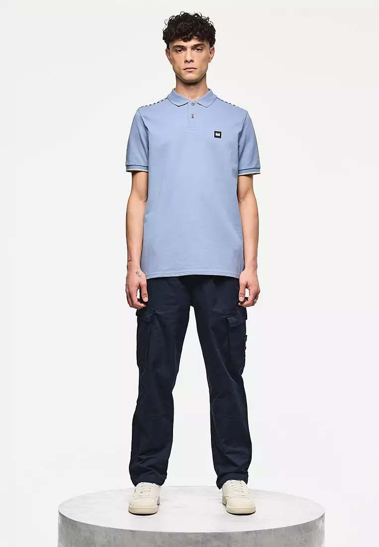 MENS BLUE SHADOW SAKAI POLO WITH MID HOUSE CHECK PIPING