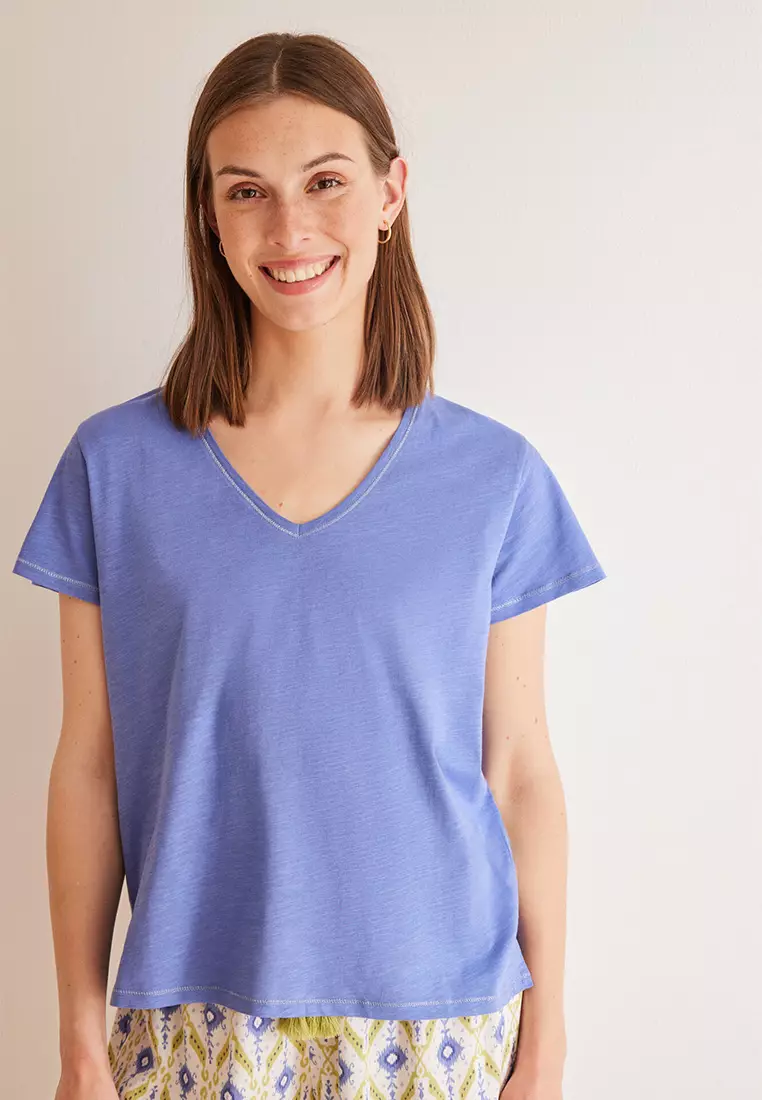 Blue Slub Cotton T-Shirt