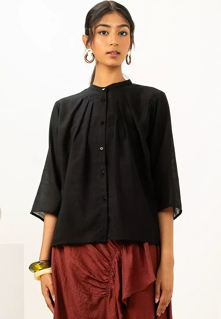 - Neck: Mandarin collar